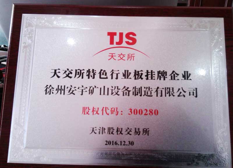 熱烈慶祝徐州安宇礦山設(shè)備制造有限公司(以下簡稱:徐州安宇),于2016年12月30日,備案申請文件已通過天交所審核,成功在天津股權(quán)交易所掛牌,我公司已具備天津股權(quán)交易所互聯(lián)網(wǎng)金融平臺—添金投金牌會員注冊資格,注冊編號為V00084。(徐州安宇股權(quán)交易代碼:300280)。