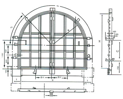 說明:斜風井防爆門標準設計適用于最大負壓3500Pa抽出式通風機。
