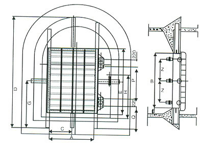 防水密閉門用于井下主變電所和主排水泵房通往井底車場的通道,容易關閉,以防止水的突然浸入。本密閉門最大承受壓力為98Pa。本密閉門門扇為平鋼板、井字筋板、圈梁等組接而成。