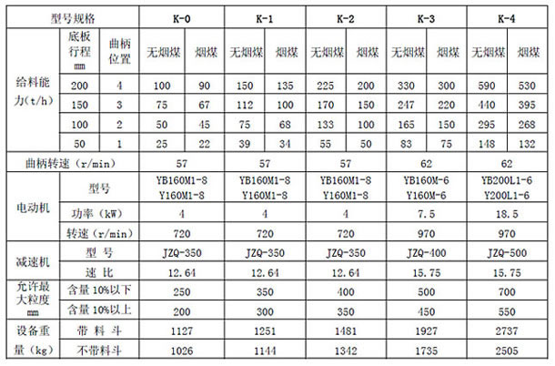 K型往復(fù)式給煤機(jī)用于煤或其它磨琢性小、粘性小的松散粒狀物料的給料,將儲(chǔ)倉或料坑里的物料連續(xù)均勻地卸落到運(yùn)輸設(shè)備或其他篩選設(shè)備中。